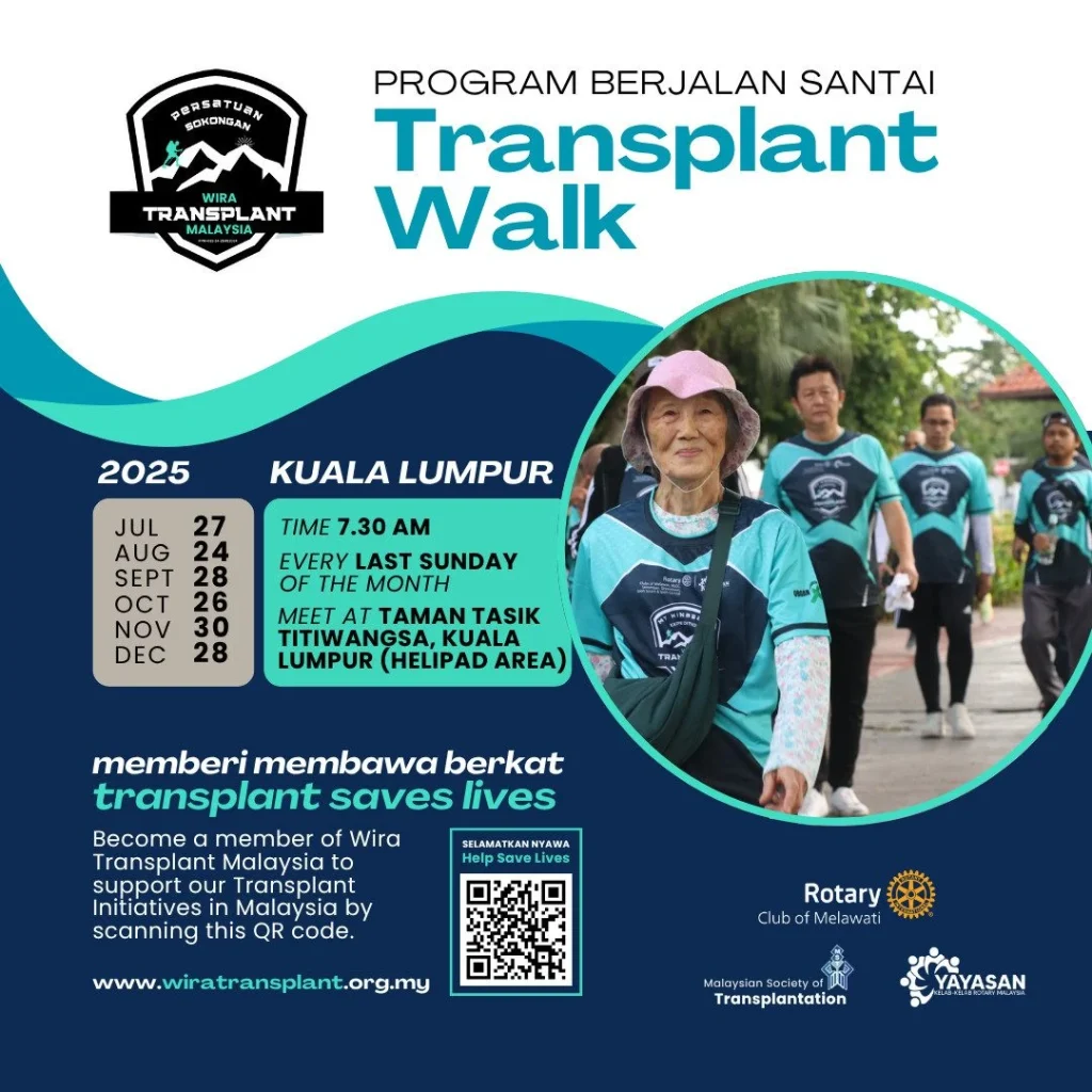 Wira Transplant Malaysia is a patient-led non-profit advocacy group dedicated to improving the lives of transplant patients and raising awareness about organ donation across Malaysia. It was initiated by the Rotary Club of Melawati and founded by transplant patients and supporters. Our mission is to bridge the gaps between patients, donors, caregivers, and healthcare professionals through support, education, and community engagement.
